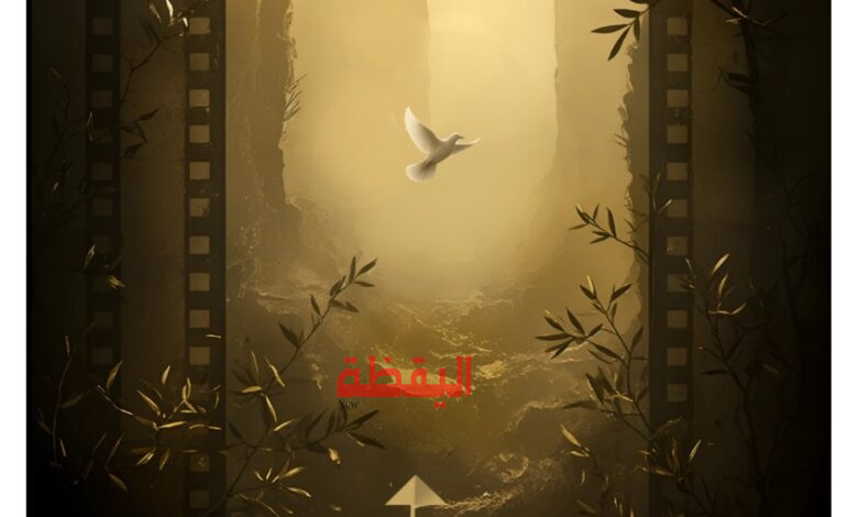 تغمر المشهدَ درجات الذهب والبرونز، في تدرجات ضوئية تتسلل من عمق الصورة نحو الأفق، وكأنها شروق جديد ينبثق من بين الظلال. بينما تنمو أغصان الزيتون على أطراف الكادر لتستعيد دورة الحياة، ويُطوّق المشهد شريطان سينمائيان يحوّلان القصة إلى ذاكرة قابلة للمشاركة على الشاشة، تحية للفن الذي ينهض من بين الركام، وصوتًا للإنسان الذي لا يموت في ذاكرة السينما، فتتآلف العناصر في معنى واحد يوجّه العين من الأنقاض إلى الفضاء المفتوح ومن الألم إلى الرجاء.
