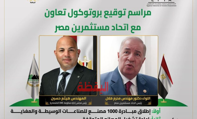 اتحاد مستثمري مصر يوقّع بروتوكول تعاون مع منظومة OMC الاقتصادية لإطلاق مبادرة “1000 مصنع” ودعم الصناعة الوطنية