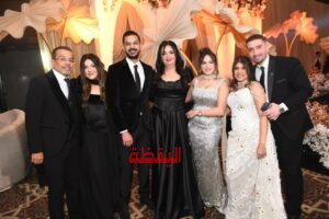 وشهد حفل الزفاف مشاركة كل من محمد عبد الحافظ، ومحمد العمروسي، وأحمد الحلواني، الذين أشعلوا الأجواء بالرقص والاحتفال مع العروسين.