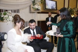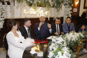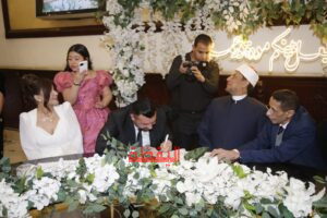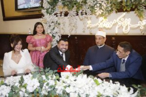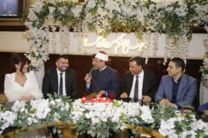بحضور عدد كبير من الأهل العروسين والاصدقاء ورجال الأعمال وسيدات المجتمع وقام بعقد القران الشيخ الداعية رمضان عبد المعز وذالك بمسجد المشير بالتجمع الخامس .